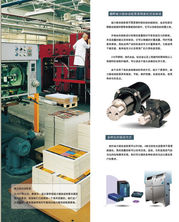 齒輪泵的計(jì)量是靠控制點(diǎn)擊的轉(zhuǎn)速達(dá)到的。為了達(dá)到比較大的使用壽命,我們一般建議采用無刷直流電機(jī)或交流電機(jī)。對(duì)于無刷直流電機(jī),它的轉(zhuǎn)速可以通過控制輸入電壓實(shí)現(xiàn)。配以轉(zhuǎn)數(shù)計(jì)數(shù)器。計(jì)量的控制精度可以達(dá)到0.25%。如果采用直流電機(jī),就需要使用變頻器對(duì)它進(jìn)行轉(zhuǎn)速控制。目前變頻器配以變頻電機(jī)可以達(dá)到的最大轉(zhuǎn)速比1000:1.