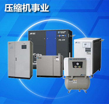 壓縮機(jī)事業(yè) 隨著無油空氣壓縮機(jī)的普及,壓縮空氣不僅用于工業(yè)(氣缸·氣動工具·涂裝用氣等),在半導(dǎo)體·食品·醫(yī)療·醫(yī)藥等行業(yè),其用途也在逐漸擴(kuò)大。