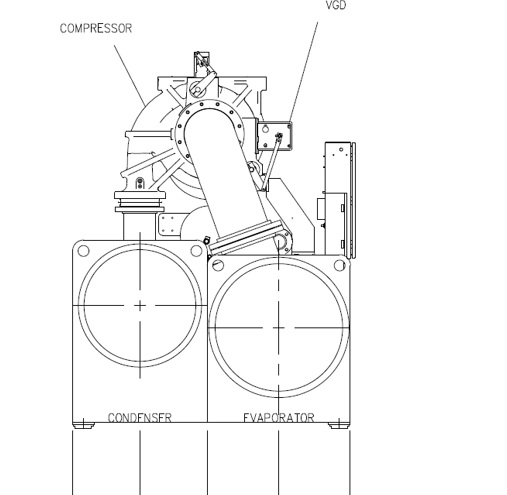 2. 單級離心壓縮機的使用在滿足冷水機組的各種變工況運行要求的同時時,減少內部運行部件以實現簡潔高效地運行。