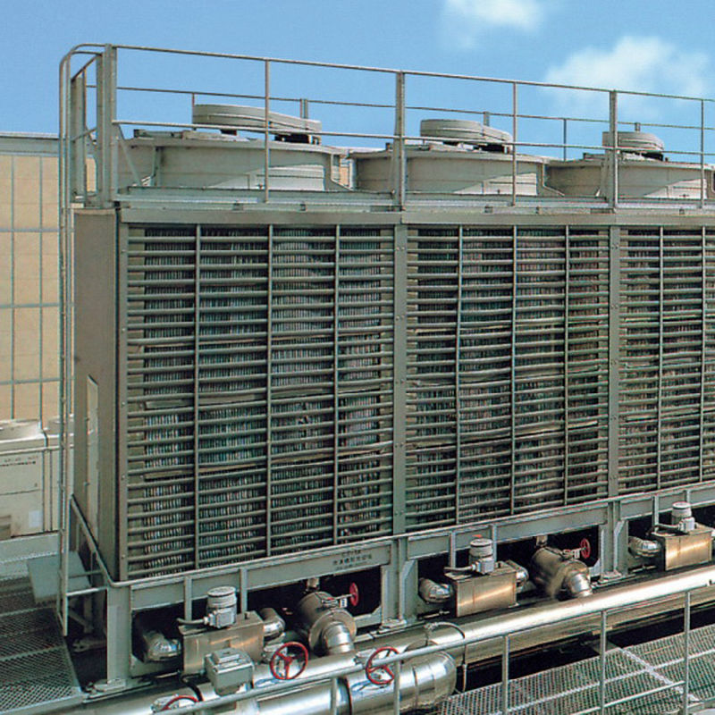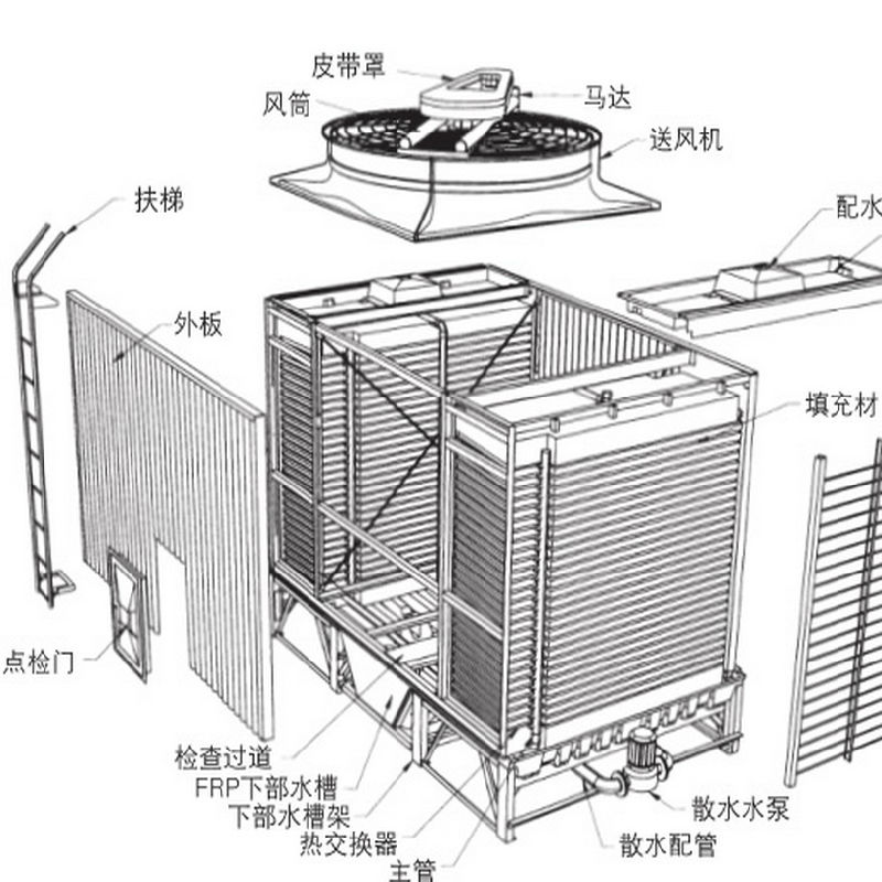 閉式冷卻塔(也叫蒸發(fā)式空冷器或密閉式冷卻塔)是將管式換熱器置于塔內(nèi),通過流通的空氣、噴淋水與循環(huán)水的熱交換保證降溫效果。由于是閉式循環(huán),其能夠保證水質(zhì)不受污染,很好的保護了主設(shè)備的高效運行,提高了使用壽命。外界氣溫較低時,可以停掉噴淋水系統(tǒng),起到節(jié)水效果。推著國家節(jié)能減排政策的實施和水資源的日益匱乏,近幾年密閉式冷卻塔在鋼鐵冶金、電力電子、機械加工、空調(diào)系統(tǒng)等行業(yè)得到了廣泛的應(yīng)用。
